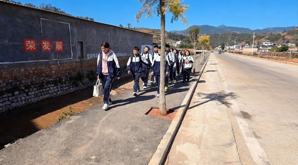 不远处,崭新的步道顺着集镇通往县城的县道延伸,步道旁的行道树绿意盎然。普志辉介绍,该路段附近有集镇、多个村组、青龙中学,过去人车混行,上、下学时等高峰时段,1100多名学生同时通行存在交通安全隐患;现在平均宽2米的专用人行步道建成后,彻底实现了人车分流、各行其道,家长们放心多了,这条路也被老百姓亲切地称为“爱心路”“护学路”。“在协调林草部门捐赠以及社区自行筹集行道树苗后,镇村干部自发参与了栽种。”普志辉说。