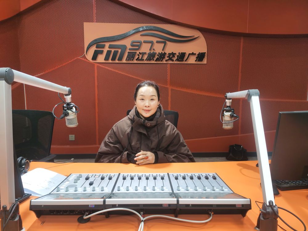 12月23日,丽江市文化馆音乐舞蹈服务中心主任马国国做客丽江旅游交通广播。(丽江融媒记者 李婧 摄)