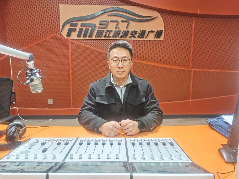 12月23日下午,玉龙县民政局局长李晓辉做客丽江旅游交通广播。(丽江融媒记者 李婧 摄)