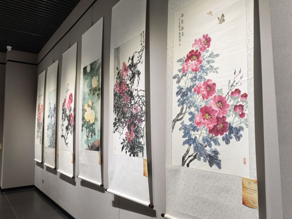 书画作品展精选展出洛阳书画艺术家的75幅书法、国画佳作,作品以牡丹文化为核心创作脉络,笔墨间尽显中原书画艺术的传统底蕴与时代风采,全方位展现河洛文化的独特韵味。