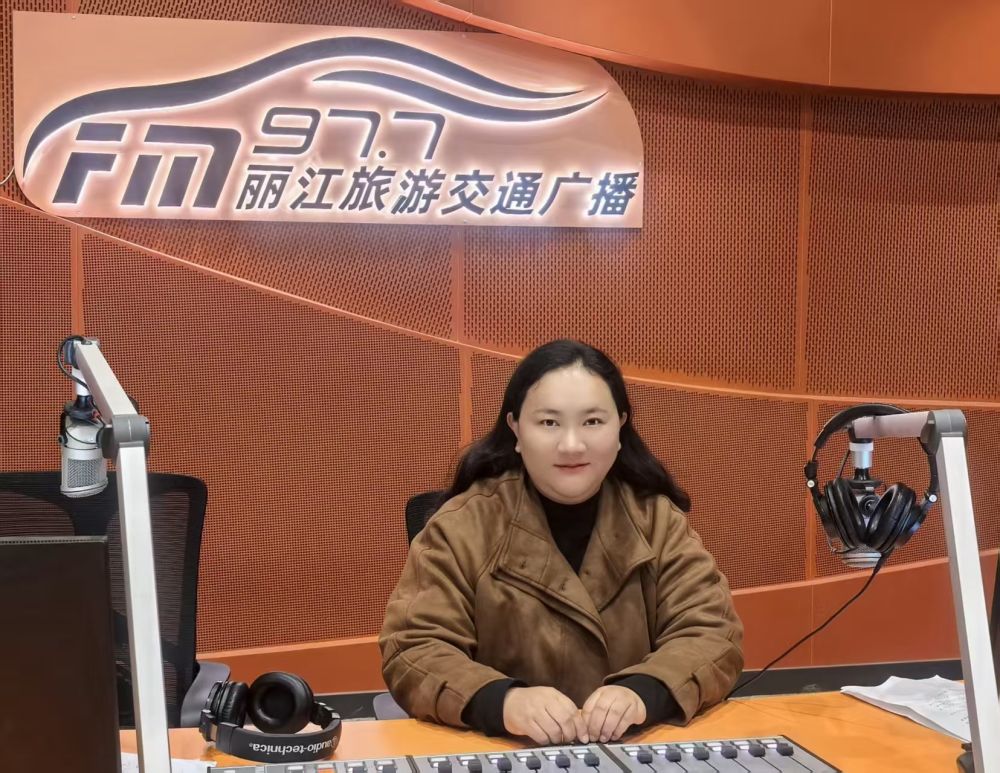12月25日,丽江市商务局市场运行科科长金楠做客FM97.7丽江旅游交通广播。(丽江融媒记者 梁国宏 摄)