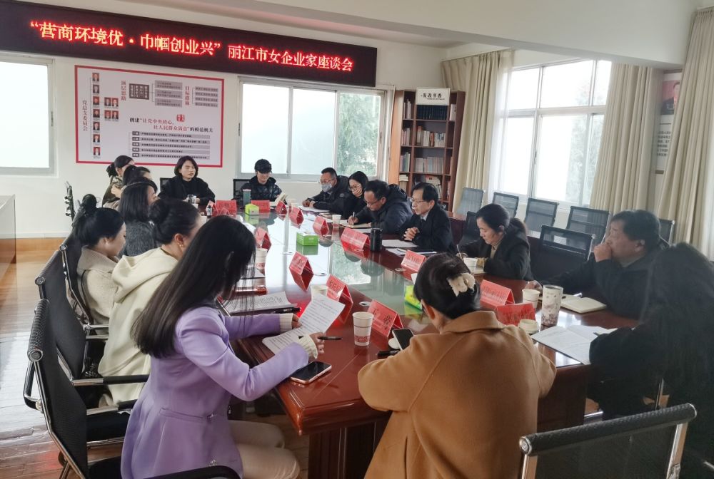 12月23日下午,丽江市发展和改革委员会联合市妇联、市工商联、辖区内部分金融机构召开“营商环境优·巾帼创业兴”丽江市女企业家座谈会,旨在搭建沟通桥梁,倾听企业心声,助力民营经济发展。