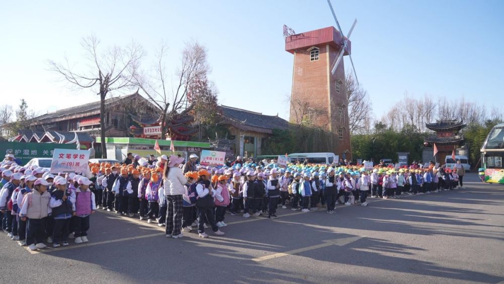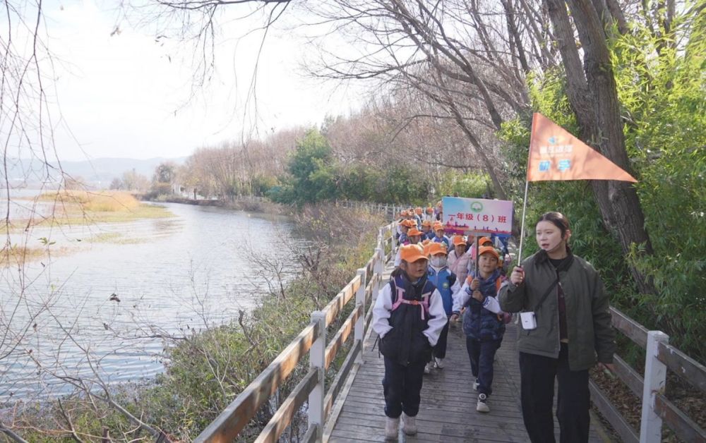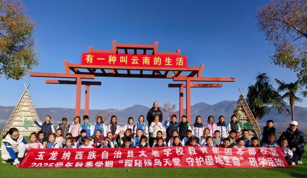 近日,玉龙县文笔学校教育集团本部校区组织中低年级学生前往拉市海湿地公园,开展以“探秘候鸟天堂 守护湿地生命”为主题的研学实践活动,让学生在自然这本“大书”中学习生态知识,增强环保意识。