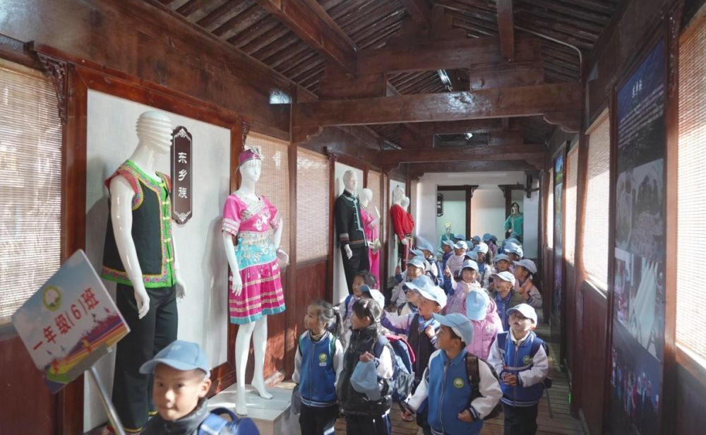 同学们走进中国少数民族村庄纪念馆。(丽江融媒记者 彭耀先 摄)