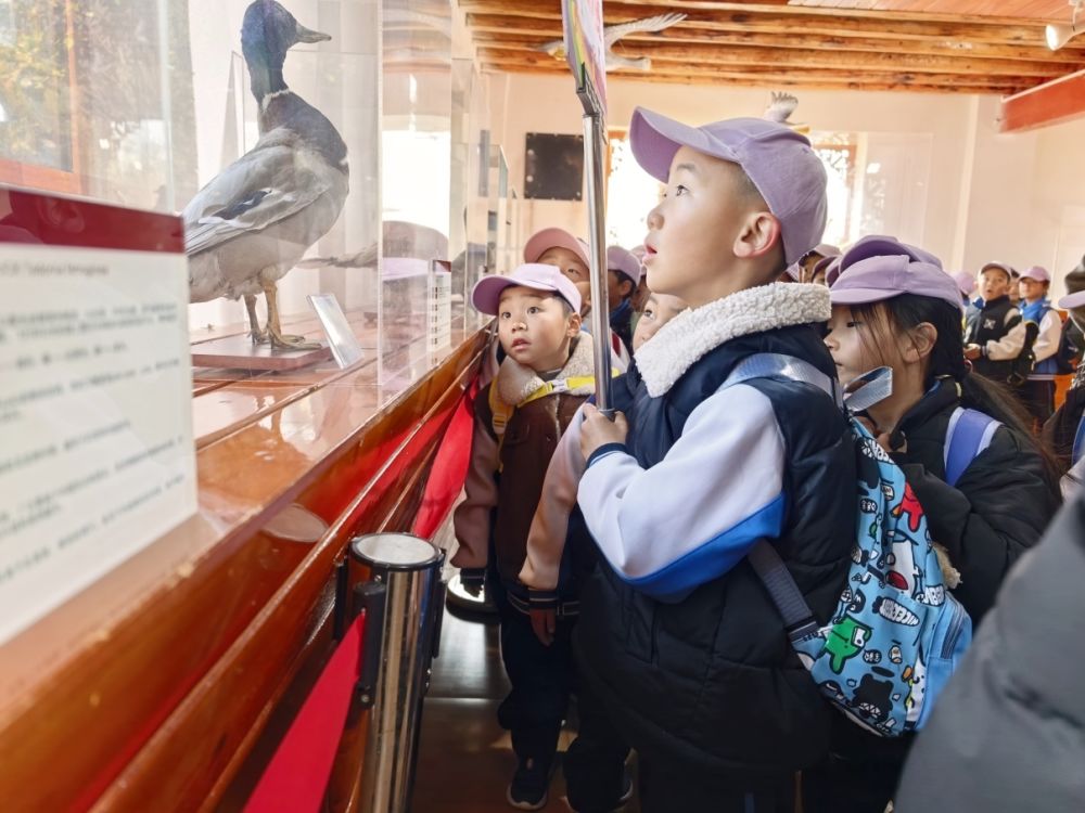 同学们参观丽江拉市海湿地博物馆。(丽江融媒记者 彭耀先 摄)