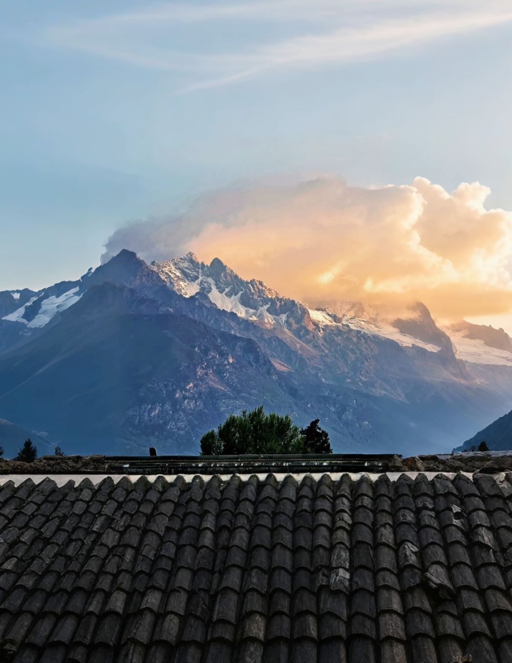 白沙古镇民宿屋顶的“日照金山”景观。(丽江融媒记者 和慧芳 摄)