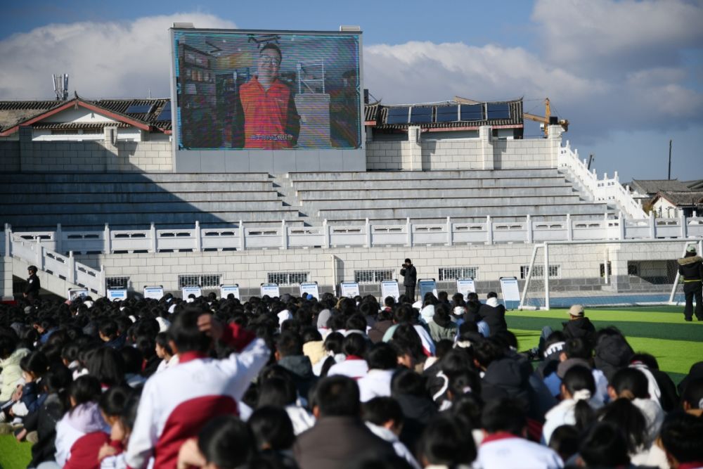 师生观看反恐怖公益宣传片。(丽江融媒见习记者 和丽菊 摄)