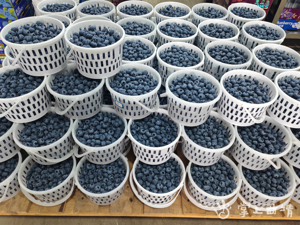 不同于传统露天蓝莓5月至6月集中上市的模式,麒麟区大力推广基质栽培与智能大棚技术,通过精准调控温湿度、光照和养分,让蓝莓实现12月至次年4月初的反季供应,供应周期延长至5个月。错峰上市不仅避开了鲜果扎堆竞争,更让蓝莓身价倍增,市场均价较传统露天蓝莓高出50%,优质品种价格直接翻倍。