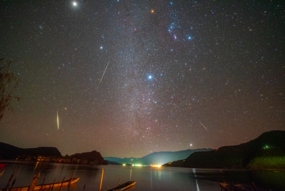 泸沽湖景区流星雨划破夜空。(楚明阳 摄)