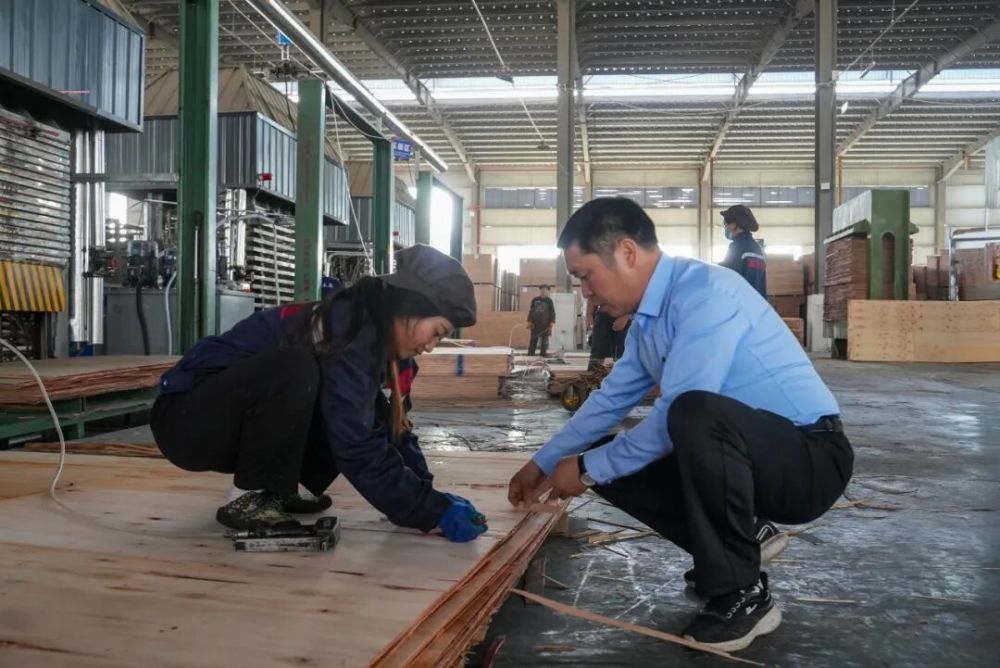 企业发展的红利,最终惠及了边疆群众。在旋切板车间,家住勐梭镇秧落村博航九组的车间工人娜软正仔细筛选着单板,她的丈夫岩保则驾驶抓车转运原料。“2020年岩保先来厂里上班,月薪从3000元涨到了现在的8800元,我是2023年进来的,现在每月也能拿5200元,我们两口子加起来月入14000元,今年刚换了新车。”娜软笑着说,家门口的好工作让他们既能照顾老人孩子,又能稳步增收,日子越过越红火。