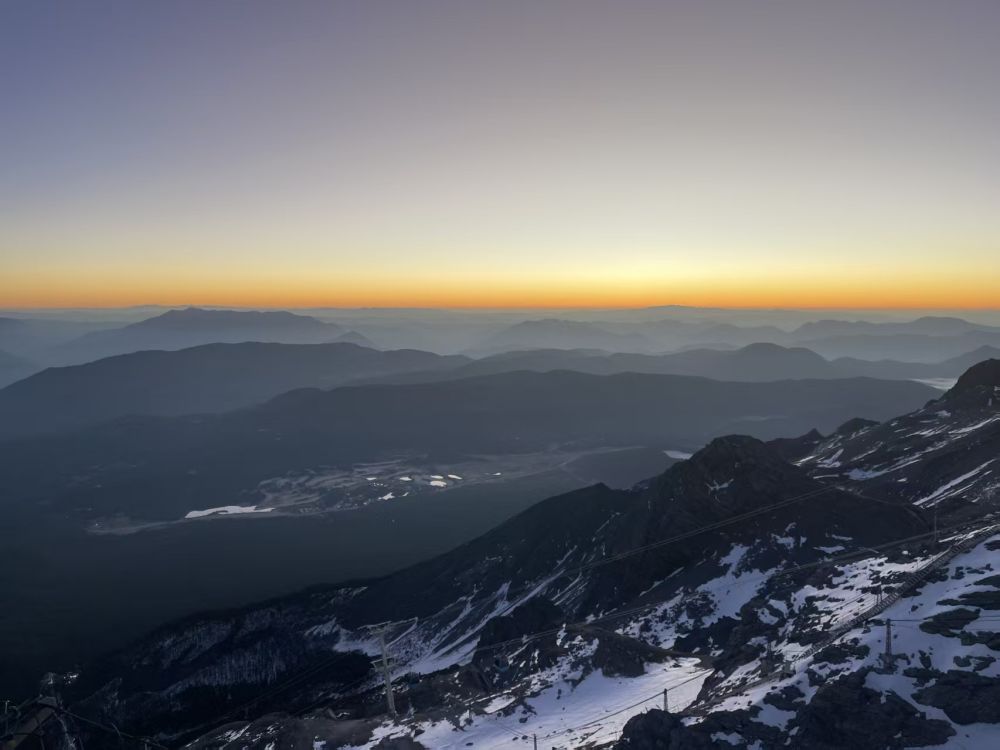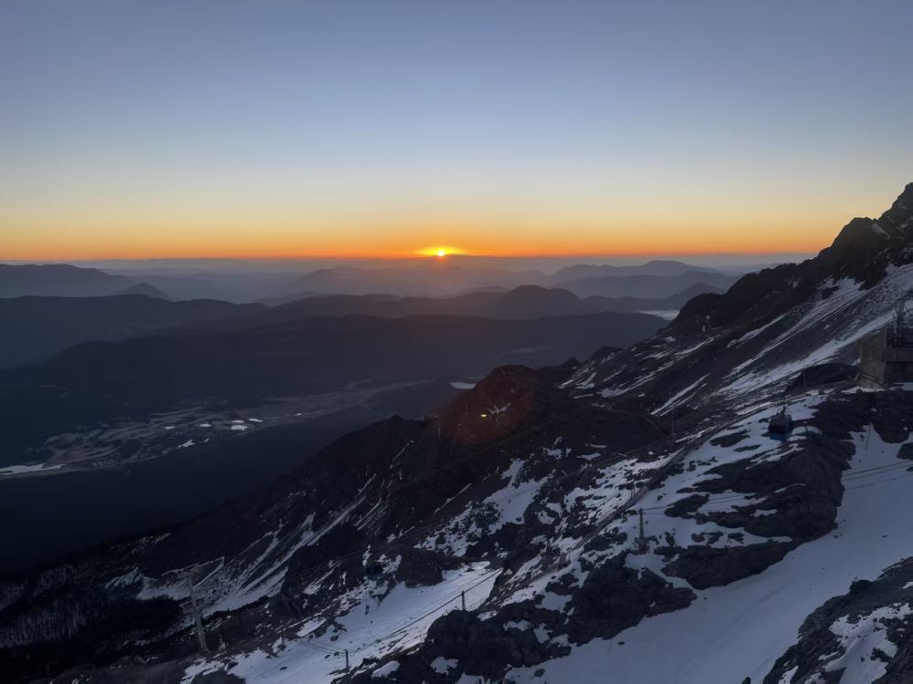 1月1日,晨曦微露,在玉龙雪山4506米观景台的人们望向东方远眺第一缕晨光。(玉龙雪山管委会质检中心 周晓岚 摄 )