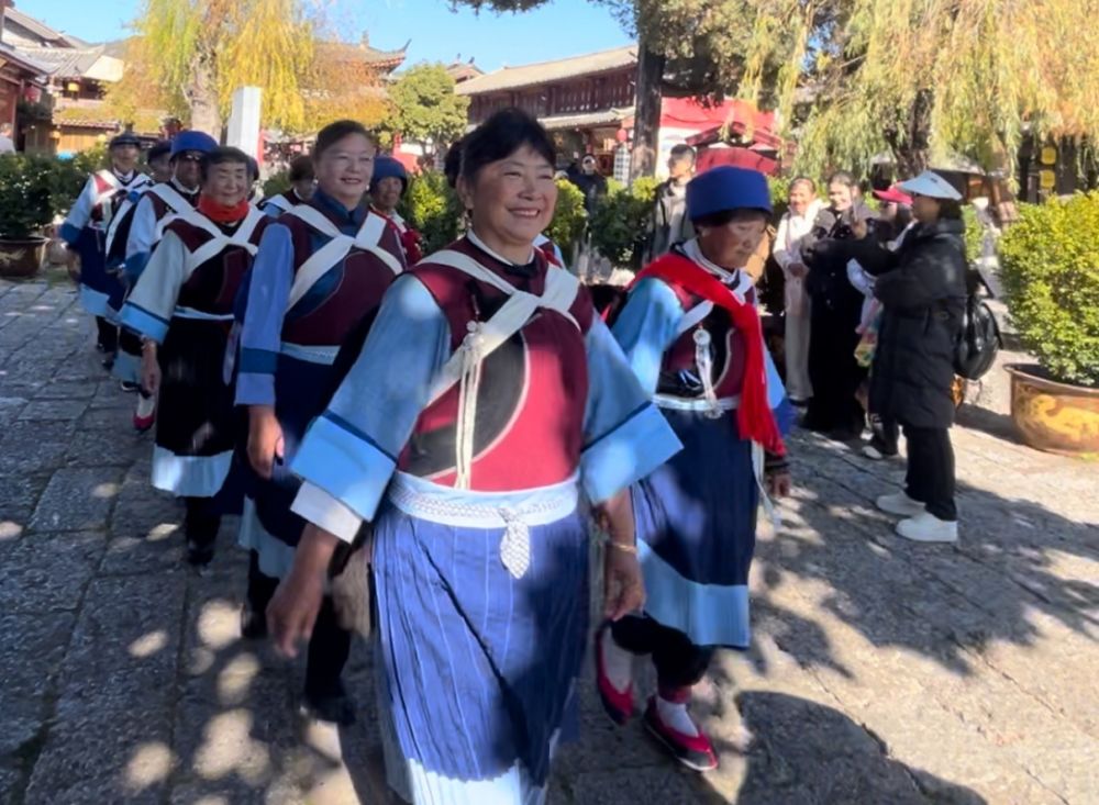 “特意来丽江跨年,没想到遇上这么精彩的表演。”四川游客张成思举着手机不停拍照,语气里满是欣喜。刚和老人合完影的大学生李璇笑盈盈地说:“奶奶们的服饰太漂亮了。这份不期而遇的美好,就是最特别的元旦礼物。”
