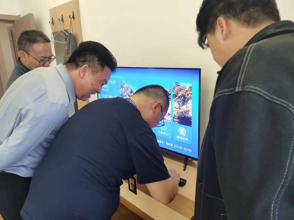 丽江市广播电视局工作人员在酒店开展整治工作。(丽江市广播电视局供图)