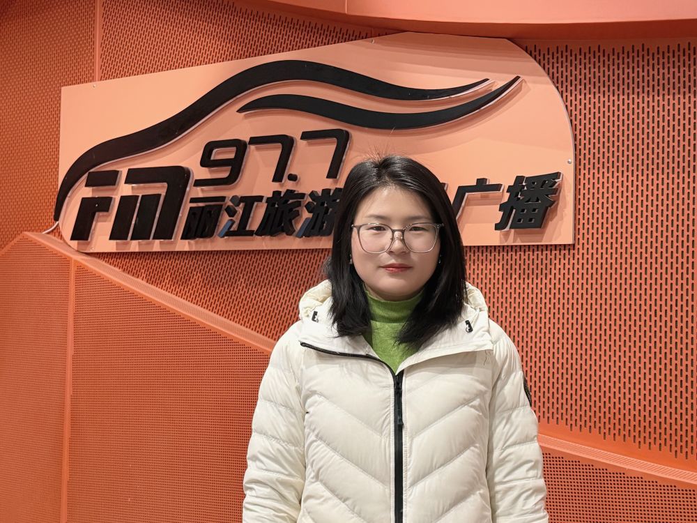 1月6日,玉龙县黄山街道办事处副主任 木顺 走进FM97.7丽江旅游交通广播直播间。(丽江融媒记者 徐蕾摄)