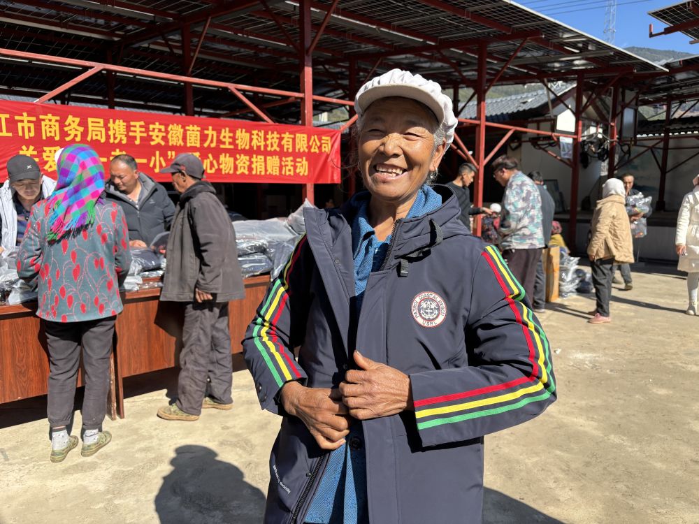 “今年,我们为村里的老人准备了近200件羽绒服。看到他们开心的笑容,我们也很开心。”安徽菌力生物科技有限公司董事长袁喆表示,今后会把这份爱心继续传递下去。