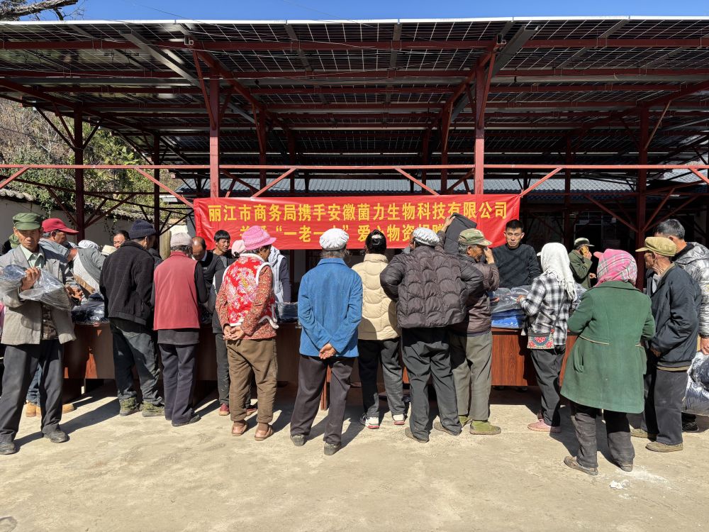 1月4日,丽江市商务局联合安徽菌力生物科技有限公司走进永胜县松坪乡撒坝子村,开展关爱“一老一小”暖冬行动,为当地老人送去冬日温暖。