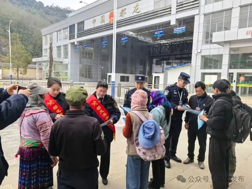 连日来,马关出入境边防检查站开展了一系列反恐怖宣传活动,让法治之声回响在口岸、集市和村寨。