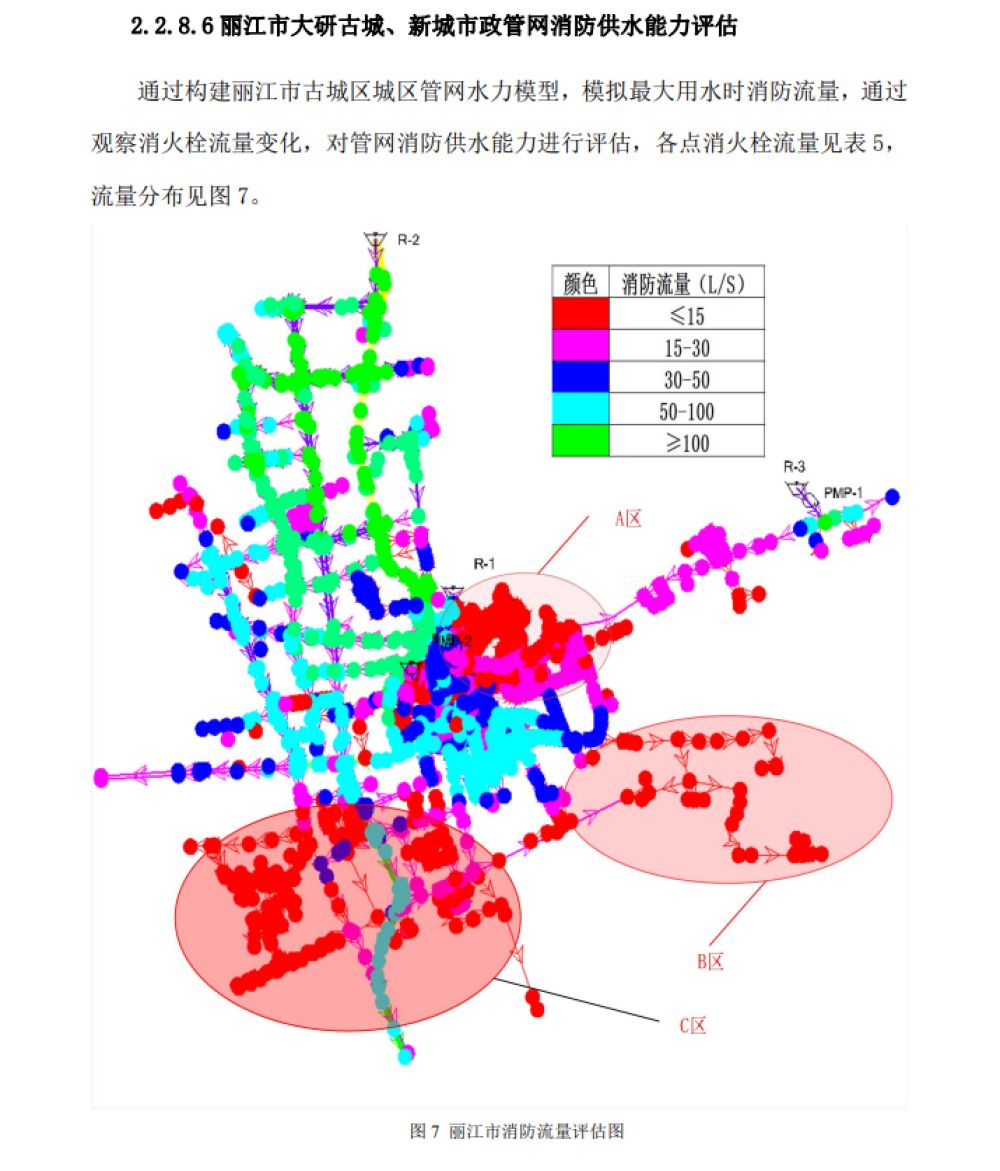 项目团队以“实用适配、科学高效”为目标,开展多维度探索创新。在基础数据支撑方面,通过实地测试与数字建模,精准绘制出丽江古城大研、束河等核心片区的消防供水能力与火灾蔓延风险等级空间分布图,清晰标注出高风险区域的分布情况。
