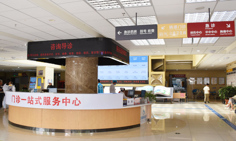丽江市人民医院福慧院区导诊台。(丽江市人民医院供图)
