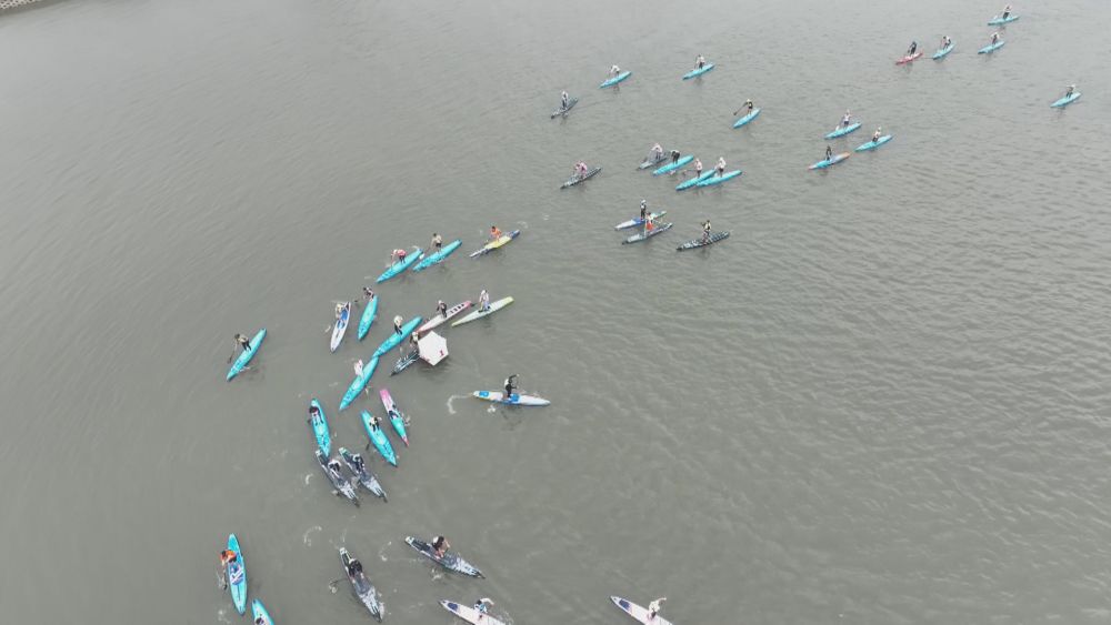 2025年中国百城桨板赛公开赛(丽江站)开赛现场。(丽江融媒记者 和涛 摄)