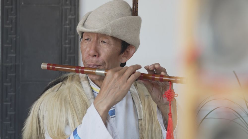 国家级非遗项目代表性传承人和凛毅在演出。(丽江融媒记者 木雯娇 摄)