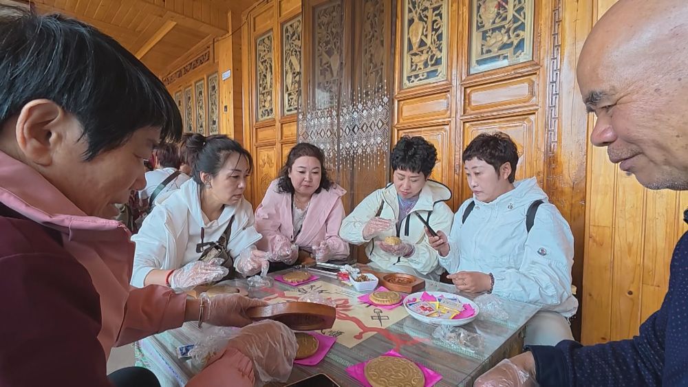 游客沉浸式体验制作月饼。(丽江融媒记者 木雯娇 摄)