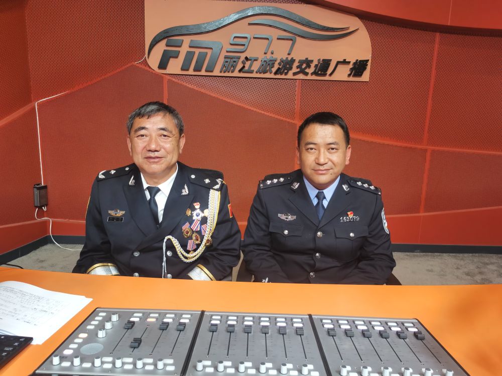 1月9日,丽江刑侦老政委和万军(左)和玉龙县拉市镇派出所所长和子天雄(右)父子做客丽江旅游交通广播。(丽江融媒记者 李婧 摄)
