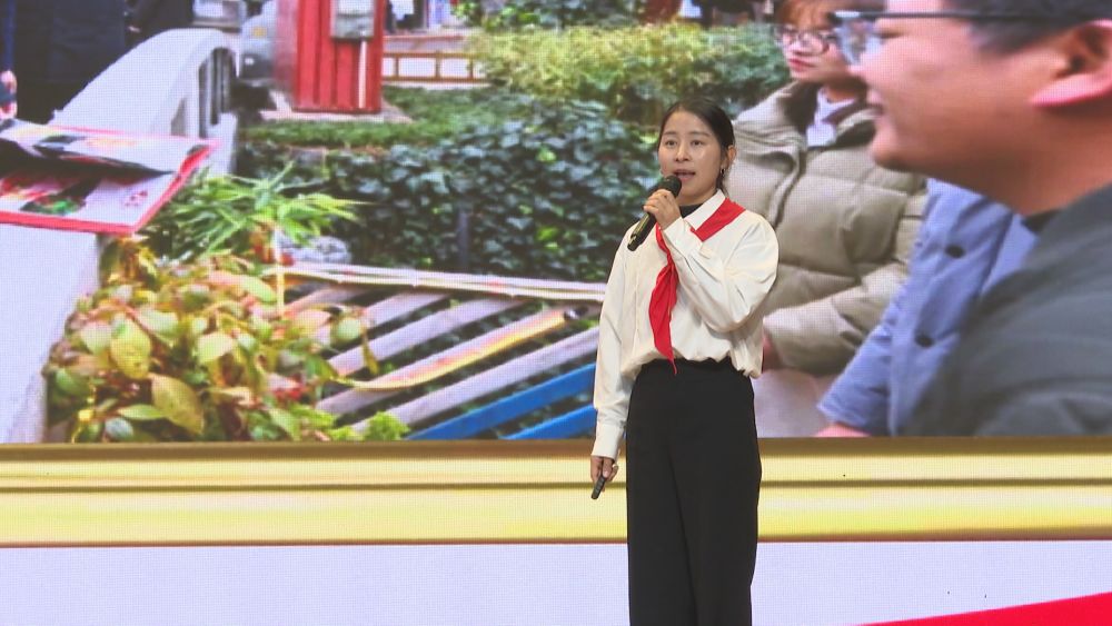全国红领巾巡讲团成员、丽江监狱一级警长周筠雨以《我们的小红书》为题进行宣讲。(丽江融媒记者 张丽瑶 摄)