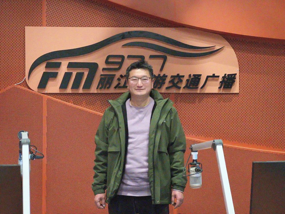 1月13日,小溪流集团董事长刘志文做客FM97.7丽江旅游交通广播直播间。(丽江融媒记者 杨超 摄)