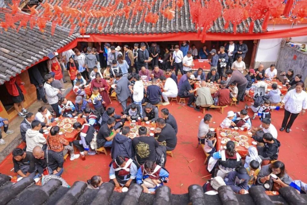 亲朋好友吃结婚宴。(图源:文旅古城)