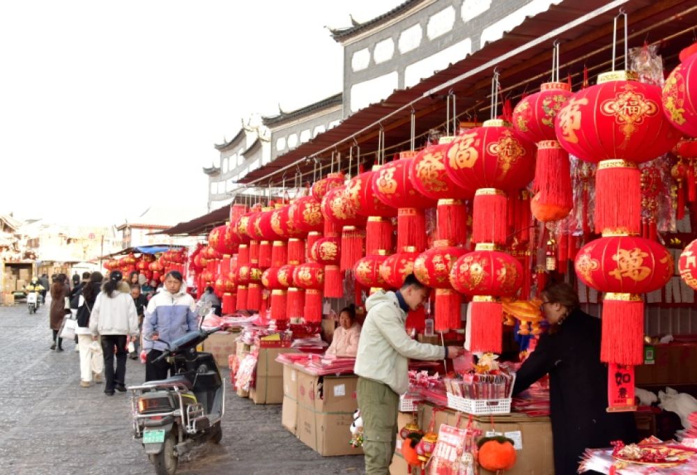 有一种喜悦的忙碌叫“囤年货”,有一种疯狂叫“达瓦纳西努”。当年味渐浓时,城区的各大集贸市场成了最鲜活的画卷。大红灯笼高高挂起,商品包罗万象,拜年礼盒、土特产、手工灯笼、民族服饰琳琅满目。人们背着背篓购买腊猪头、山茶花、吹肝、米花糖……讨价还价、呼朋唤友此起彼伏,柴米油盐的琐碎里,满是人们对新年的期盼。散发着热腾腾的烟火气,成为平凡生活中治愈人心的力量。