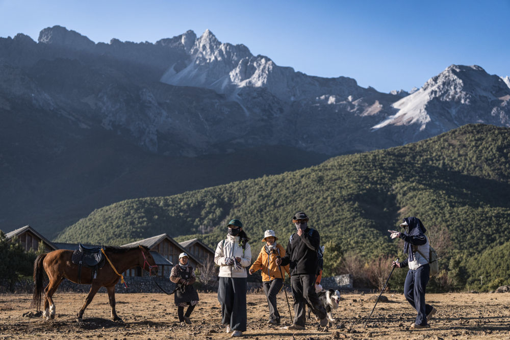 巍峨壮丽的玉龙雪山、石墙青瓦的纳西民居,勾勒出雪山村落的振兴图景,吸引着来自世界各地的游客。2025年,玉湖村共接待游客约120万人次,综合旅游收入达7500万元,村民人均年收入从2019年的1.3万元增加到目前的3.5万元。