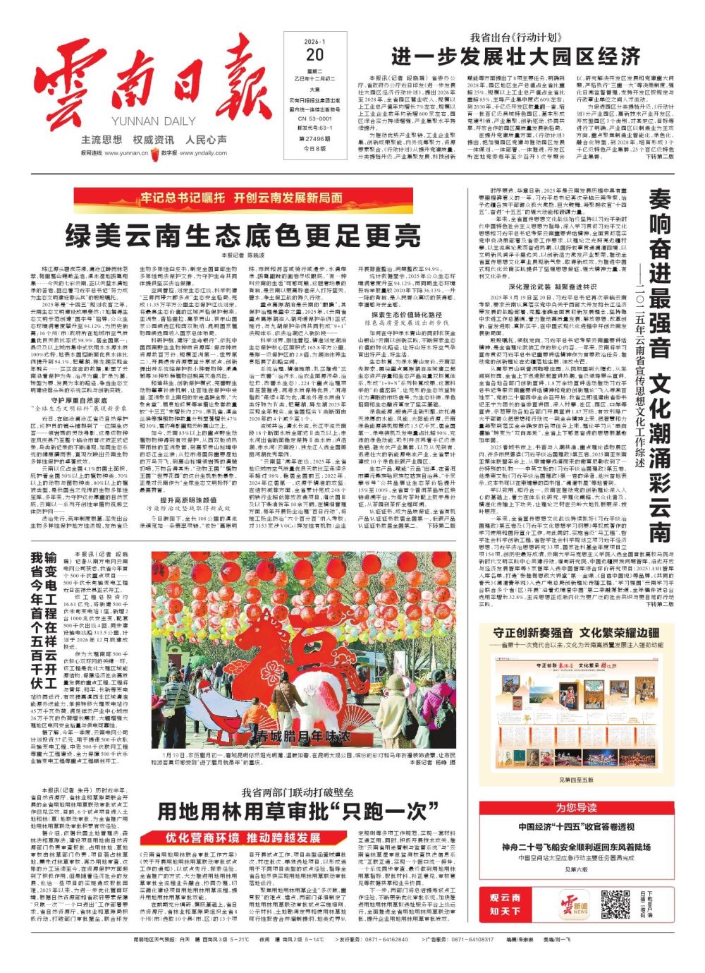 时序更迭,华章日新。2025年是云南发展历程中具有重要里程碑意义的一年。习近平总书记再次亲临云南考察,给予边疆各族干部群众极大激励、巨大鼓舞,凝聚起收官“十四五”、奋进“十五五”的强大动能和磅礴力量。
