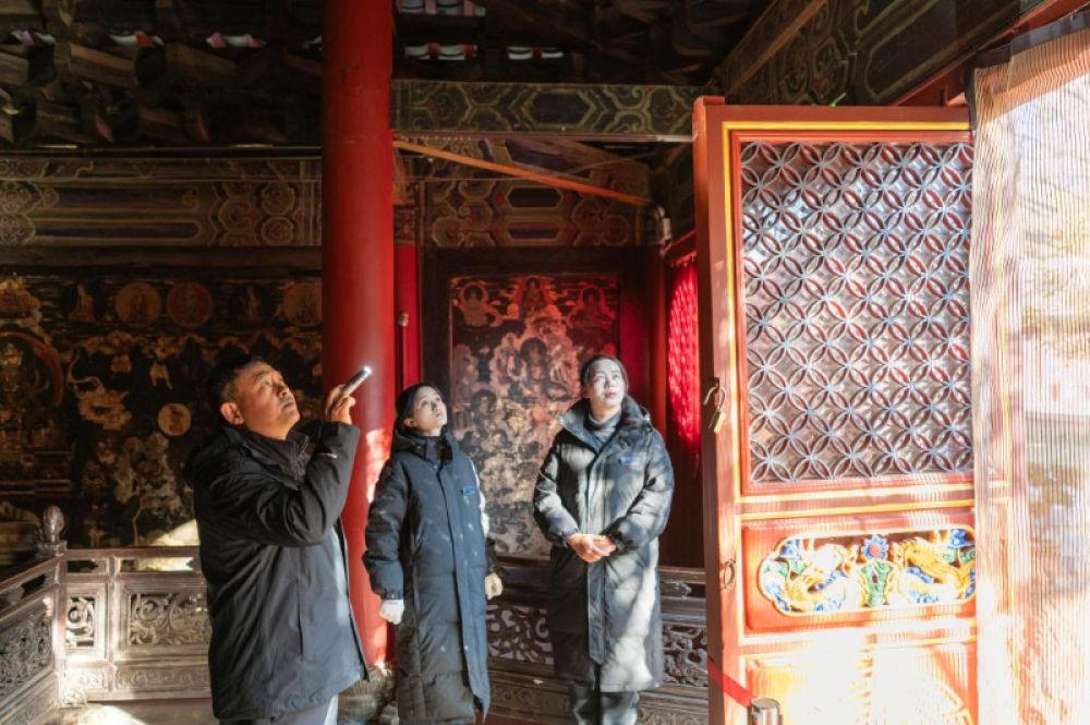 1月16日,游客参观白沙壁画博物馆大宝积宫。