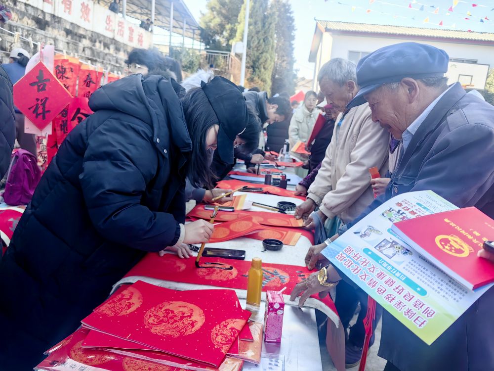 志愿者参与“迎新春 送春联”活动。(陈朝萍 供图)