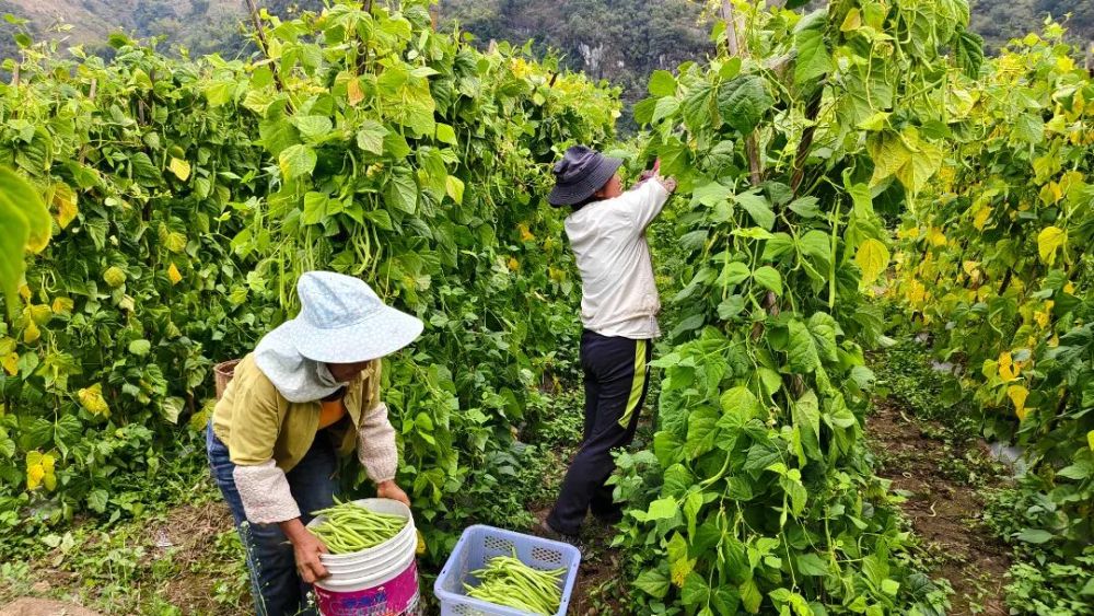 镇康县木场乡勐撒村的田野间依然绿意盎然。连片的豇豆田里,村民们正忙着采收,欢声笑语与丰收的喜悦相互交织,构成一幅生动的乡村振兴画卷。