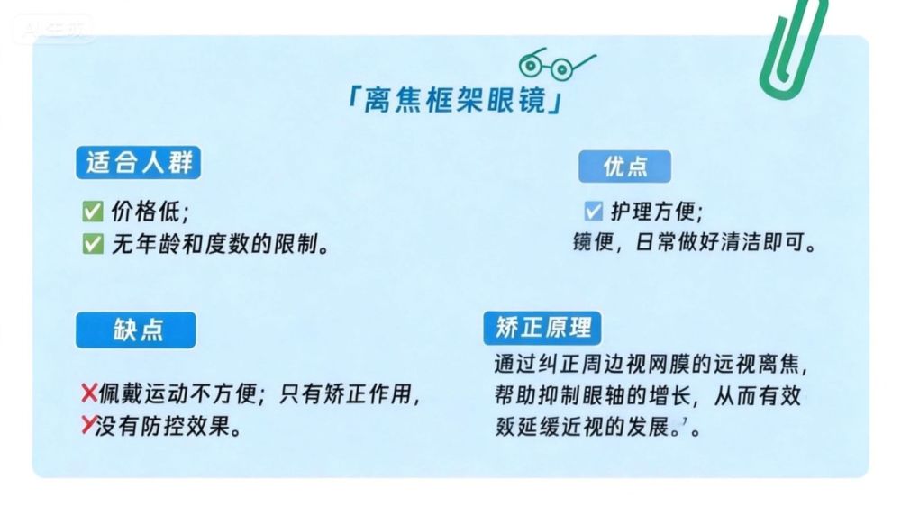 1.框架眼镜是最传统、最常用的近视矫正方法,适合所有人群。