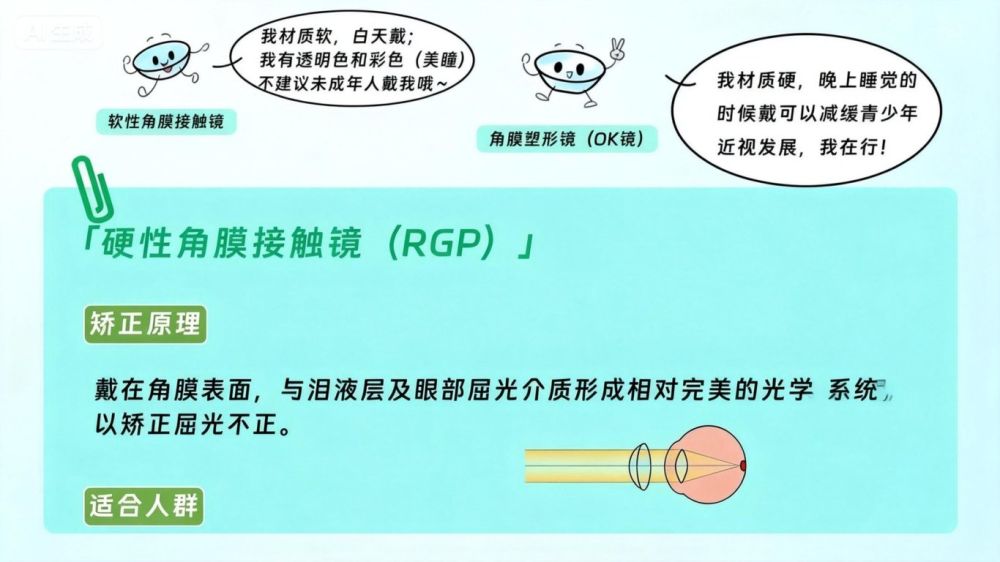 2.角膜塑形镜(OK镜)是一种特殊设计的硬性隐形眼镜,它主要适用于近视度数增长较快的青少年。