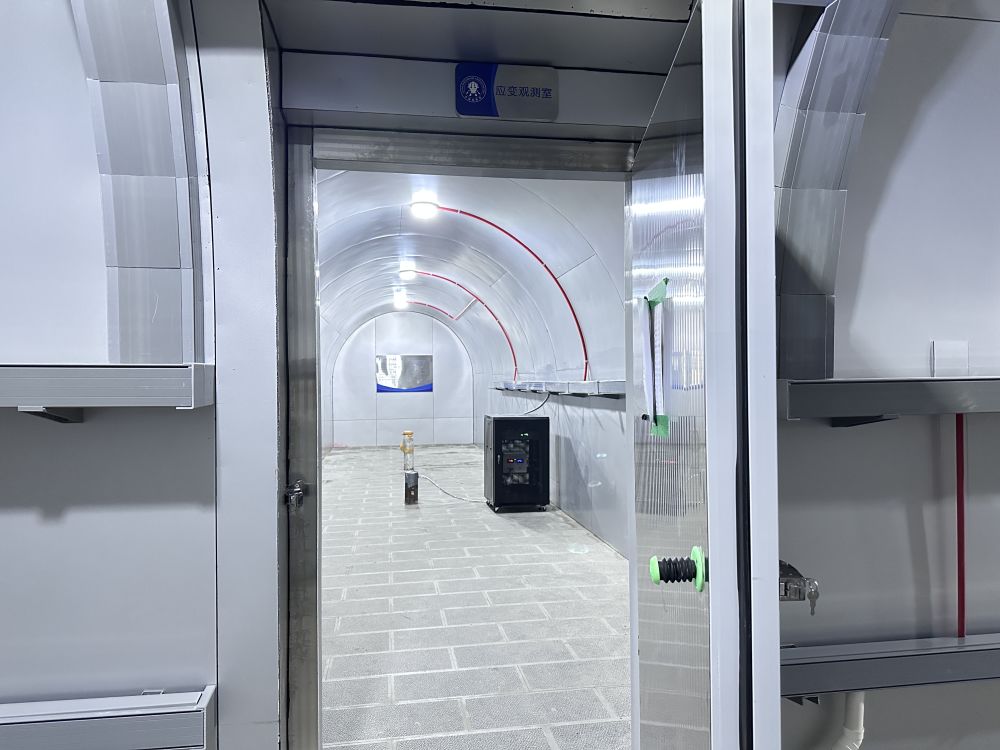 云南玉龙地震综合监测站位于玉龙县石头乡,项目总投资概算2299.45万元。包括新建观测山洞、配套用房、仪器设备及道路、供水、供电等附属设施,迁建测项涵盖测震、洞体应变、形变等多种监测手段。作为迁建项目的核心工程,新建观测山洞总长293.8米,由95.3米引洞、134.9米三角核心观测区及8个观测洞室组成,并配备完善的防排水体系和保温密封系统,能达到观测所需的恒温、恒湿、低干扰技术环境。观测系统配备有三分量水管倾斜仪、洞体摆倾斜仪、分量式应变仪等6套专业监测仪器及36台/套通用设备,能够实现对地壳形变的高精度、连续、自动化监测与数据传输。该观测山洞是目前全省监测功能较为完备、建造标准较高的地震观测山洞之一,既能满足现有先进监测设备运行需求,也为未来科学研究与技术迭代预留了可持续拓展的适配空间。