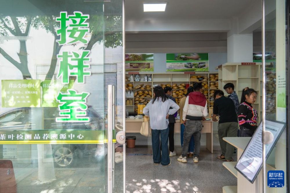 1月23日,茶农在临沧市双江县茶叶检测品荐溯源中心送样、登记茶叶。新华社记者 高咏薇 摄