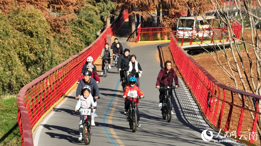人民网昆明1月25日电 (记者李发兴)1月24日,昆明市呈贡区举行“乐动滇池畔,绿道惬意骑”自行车骑行嘉年华活动,近300名骑行爱好者在畅快骑行中邂逅滇池生态之美。