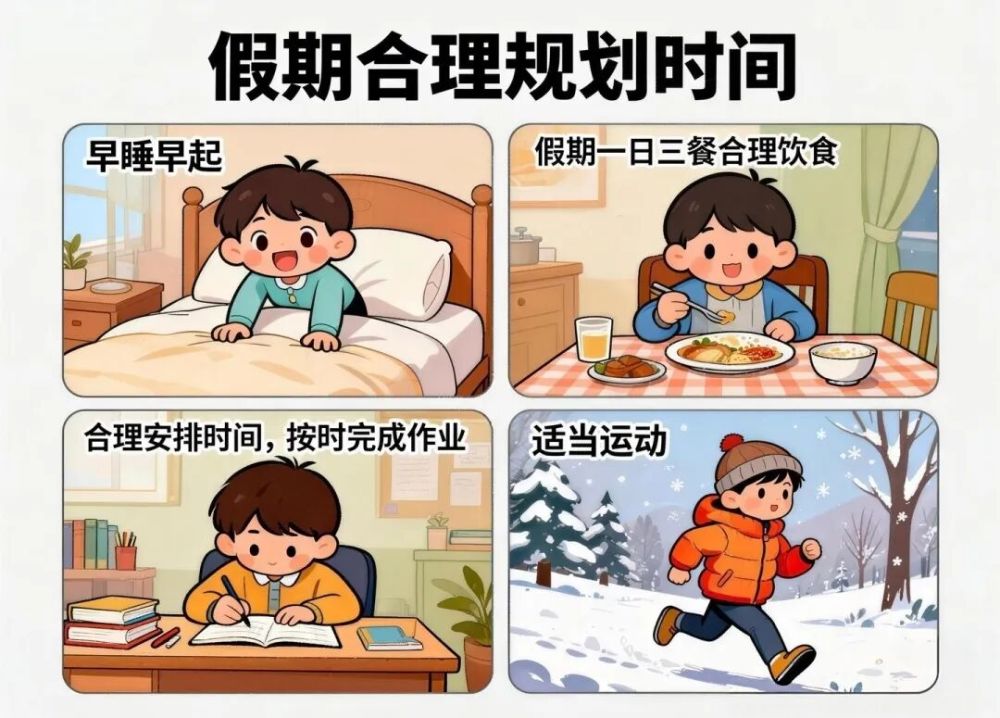 丽江市教育体育局温馨提示:假期里要合理规划时间,保持早睡早起、规律饮食、按时完成作业、适度运动的健康作息。(丽江市教育体育局 供图)