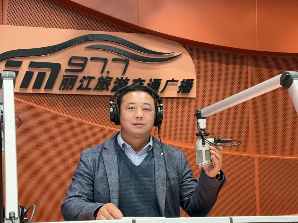 1月28日,丽江市教育体育局法制与安全稳定科科长 金高做客FM97.7丽江旅游交通广播直播间。(丽江融媒记者 杨超 摄)