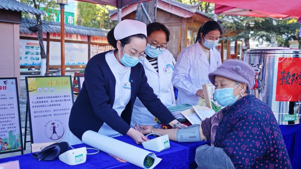 活动现场,医护人员耐心细致地为群众量血压。(丽江融媒记者 李琳 摄)