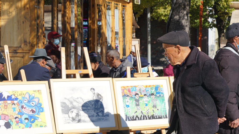 青少年绘画展吸引群众驻足欣赏。(丽江融媒记者 李琳 摄)