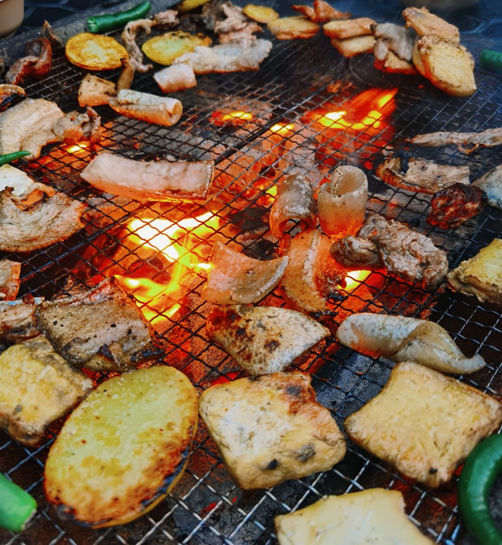 滋滋冒油的烤肉。(丽江融媒记者 赵永莲 摄)