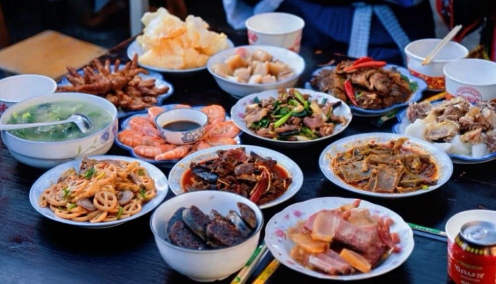 夕阳西下时,亲朋好友陆续赶来,院坝里的八仙桌被摆得满满当当。桌上的菜肴热气腾腾,瘦肉炒蒜苗、酸菜炒猪肝、清炖排骨、蒸米灌肠,每一道菜都承载着丽江人的生活智慧。大人们推杯换盏,谈论着今年的收成和来年的打算;孩子们围坐在火塘边,啃着油光锃亮的猪骨头,笑声在院落里久久回荡。
