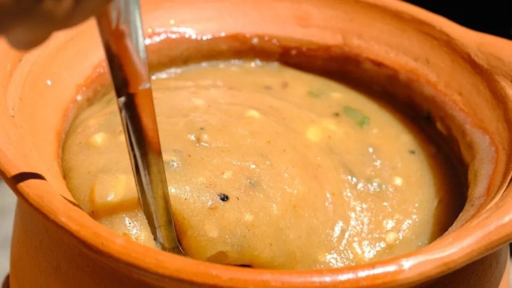 拥有十多年制菜经验的尚散嘎,是寨子里公认的“粥能手”。他娴熟操作着每一步:先将处理干净的鳝鱼切成小段,热油下锅翻炒后盛出备用;再把蒜末与傣族豆豉放入锅中炒出浓香,倒入鳝鱼段回锅翻炒,让豆豉的咸香与鳝鱼的鲜甜充分交融;随后加水煮沸,缓缓淋入细腻的米浆,撒入盐巴等调料并不断搅拌,直至粥体浓稠绵密。