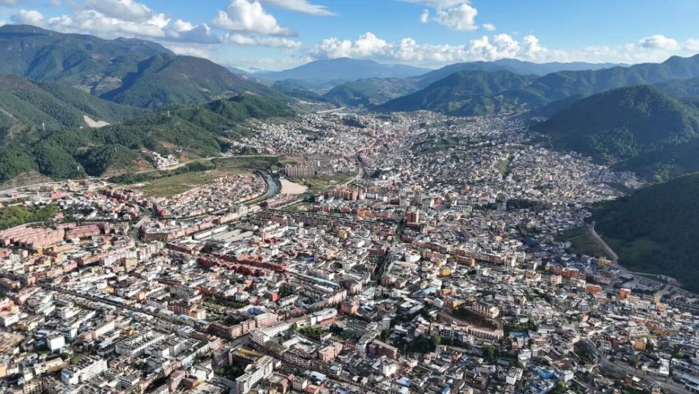 航拍宁蒗县城。(图源:宁蒗县融媒体中心)