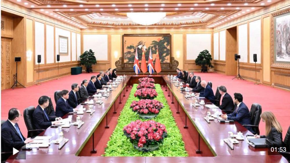 1月29日上午,国家主席习近平在北京人民大会堂会见来华进行正式访问的英国首相斯塔默。